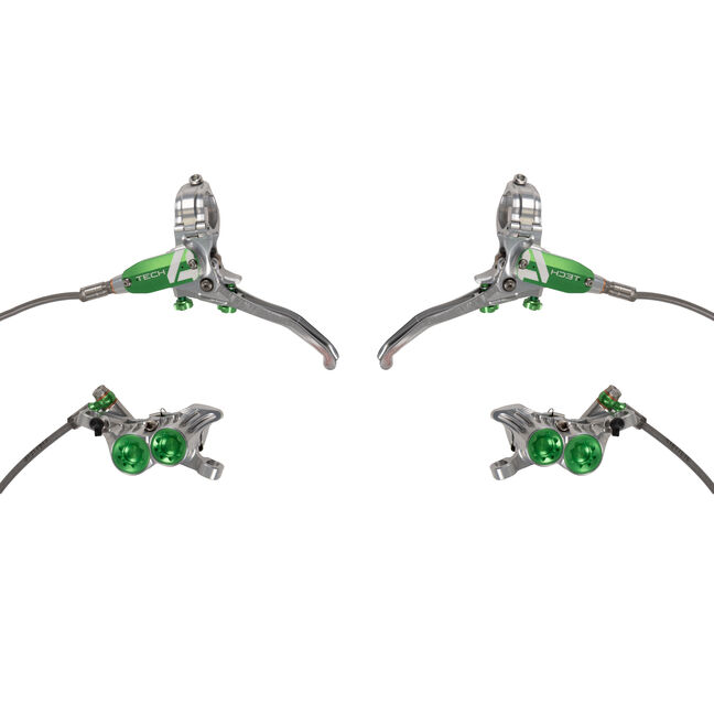 El Tech 4 utiliza un nuevo sellado interno para reducir la fricción y el pivote gira sobre cojinetes de rodillos, lo que permite reducir el muelle. A su vez, el menor muelle proporciona una acción de palanca más ligera, reduciendo la fatiga del piloto y manteniendo el tacto y la modulación legendarios. La pinza V4 actualizada utiliza pistones de acero inoxidable de estilo híbrido con un inserto fenólico que permite un movimiento más suave y menos mantenimiento, al tiempo que sigue siendo capaz de gestionar altas temperaturas sin transferencia de calor durante el uso extremo.